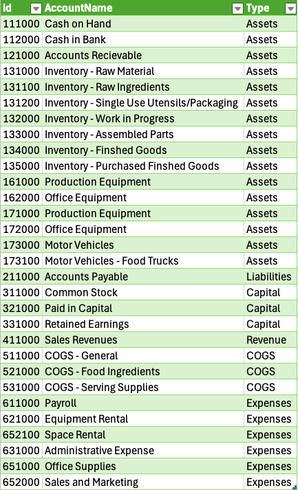 Account(id: "131100", accountName: "Inventory - Raw Ingredients", accountCategory: 1),